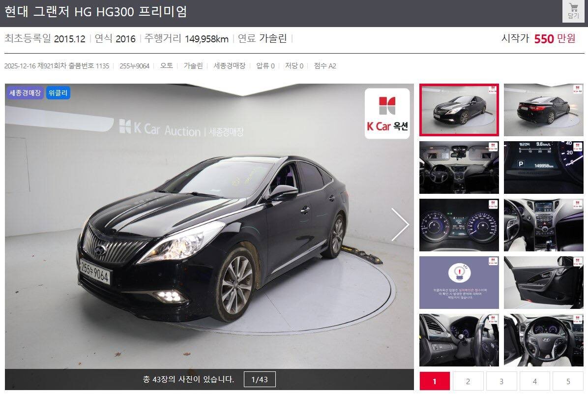 🔥 Авто с закрытого аукциона! 🚗 Марка / Модель: HYUNDAI GRANDEUR HG300 📅 Год выпуска: 2015/12 🔢 Пробег: 150.000км 💰 Стартовая цена: 5.500.000WON (3.800$) 📌 Автомобиль попал на закрытый аукцион — отличная возможность купить машину по цене значительно ниже рынка. ⚙️ Техническое состояние соответствует данным аукциона. Машина доступна для осмотра/проверки. 🎯 Возможна доставка, оформление и помощь в участии. 📞 Для подробностей, отчетов по авто и участию в торгах — пишите в личку!