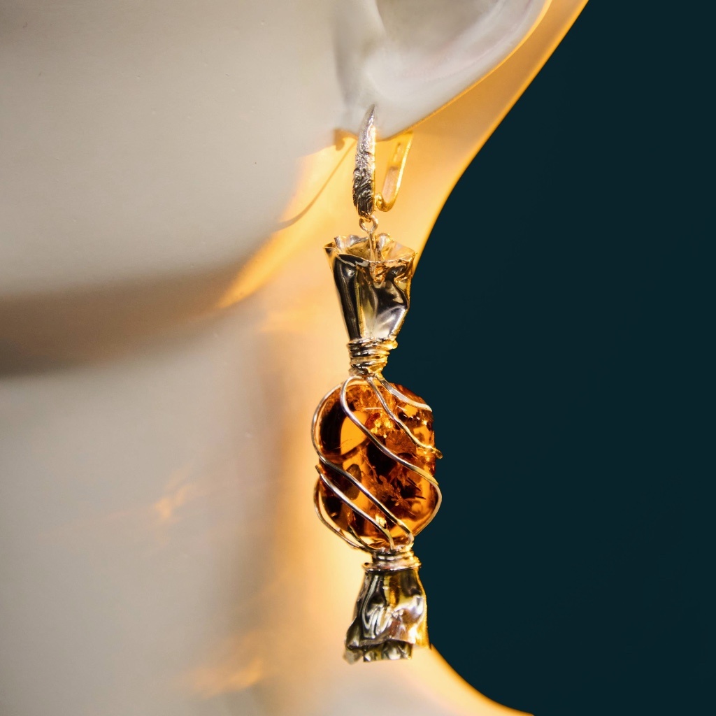Янтарный комбинат Ростеха изготовил серьги и подвеску в форме леденцов, дизайн которых придумали с помощью нейросети. Украшения сделали в единственном экземпляре, и комбинат называет их первым в своей истории ювелирным изделием, созданным при участии ИИ. Идея родилась в конкурсе эскизов среди подписчиков телеграм-каналов Ростеха и комбината: желающие могли сгенерировать дизайн в нейросети и отправить организаторам, всего пришло больше 350 вариантов. Победившую концепцию «янтарных конфет» ювелиры воплотили в прозрачном янтаре: из-за давления и температуры внутри камня появились микропузырьки, дающие, по словам компании, мягкое свечение и «карамельный» блеск. «Фантик» сделали из серебра, повторив складки реальной обёртки. В каждой серёжке и подвеске использовано примерно по 3 грамм янтаря и около 6 грамм серебра. Стоимость изделия комбинат не раскрывает. После короткого «публичного периода» украшения останутся в музее предприятия в посёлке Янтарный как арт-объект, а до этого их можно бу