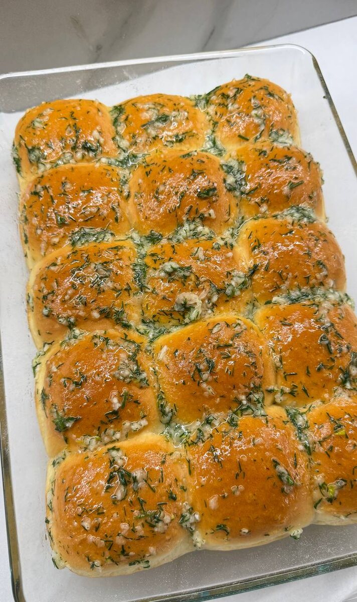 Ароматные, чесночные булочки прекрасно подойдут к любому супу, не только к борщу. Мы с моим мужем когда ещё дружили, я пообещала ему приготовить самые вкусные чесночные пампушки. Спустя 18 лет. Я же обещала 🤭 ⠀ Тесто: Молоко - 180 гр. Сухие дрожжи - 5 гр. Сахар - 25 гр. Мука - 450 гр. Кефир - 80 гр. Соль - 1,5 ч.л. Яйцо - 1 шт. Желток - от 1 яйца Масло слив. - 50 гр. комн t ⠀ Соус: Чеснок - 5 зубков Соль - 4 гр. Укроп - 10 гр. Вода - 40 мл. Масло раст. - 30 гр. ⠀ Готовим опару: В тёплом молоке растворяем дрожжи, сахар и 50 гр. муки из общего количества. Накрываем и убираем в тепло на 20 мин. ✔️ В опару добавляем кефир, соль, яйцо, желток, сливочное масло и постепенно вводим муку, замешиваем тесто около 8-10 минут. ✔️ Убираем в тепло на расстойку на 1 ч. ✔️ Затем разделить на 15 кусочков. Скатываем в шарики, укладываем в форму, смазанную раст.маслом, накрываем и оставляем подходить на 20 мин. в теплое место. ✔️ Выпекаем при 180° ~30 мин. Горячие пампушки смазать соусом. Воздушные