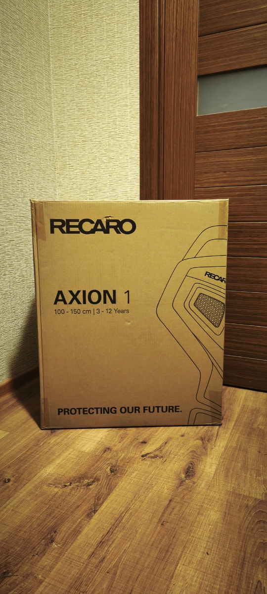 В общем заказал я его, модель выбрал Recaro Axion 1, пришло оно в небольшой и надежной упаковке, открыл ее и там уже в пакете само кресло. Мы еще и выбрали с дочкой яркое для салона авто, чтобы оно как то разбавило черный салон, взяли ярко оранжевого цвета, у них он называется Vibrant Orange.