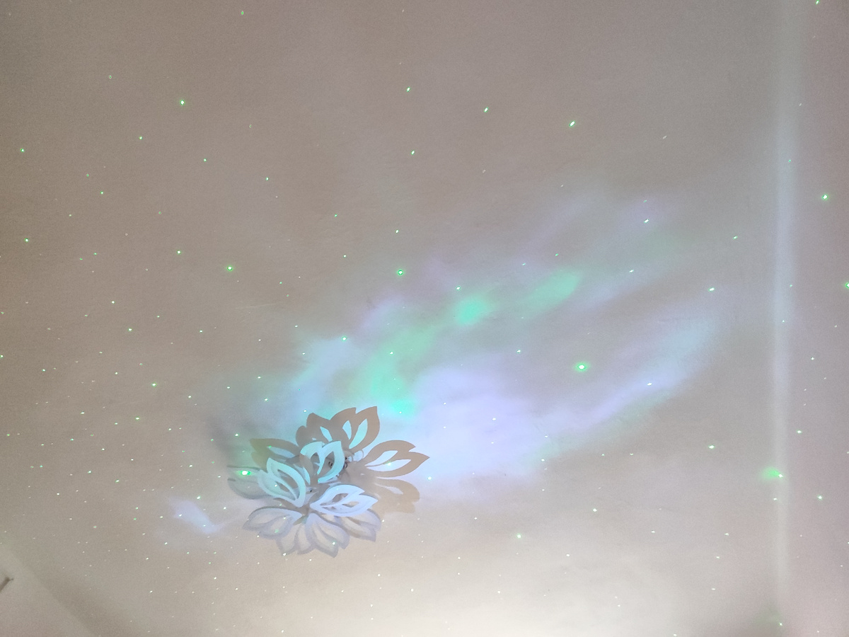 Есть режим ночника, но он на мой взгляд слишком интенсивный. Не подходит для ребёнка. Но у нас в розетке ночник и он даёт достаточный свет, а ещё проектор космонавт со звездочками. Мария очень его любит и просит на всю ночь включать. Даже утром не даёт выключить.