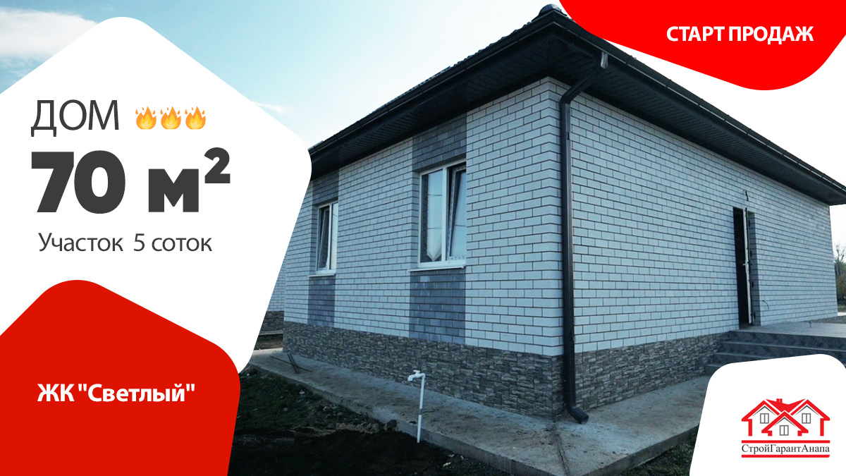 ✨ Расположение - КП "Светлый" г. Темрюк ✨ Площадь дома - 70 м² ✨ Участок - 5 соток Новый дом площадью 70 м² в живописном Светлом, который идеально подходит для комфортной жизни на юге! 🌳 Этот коттеджный поселок находится в Темрюкском районе, всего в нескольких минутах от теплого Азовского моря. 🌊 Дом снаружи выполнен в едином архитектурном стиле с белыми и серыми оттенками силикатного кирпича и красивыми черепичными крышами. Просторная терраса площадью 22,5 м² станет идеальным местом для отдыха и семейных встреч. ✨ Внутри дом находится в предчистовой отделке с идеально гладкими стенами и уже проложенной проводкой. В доме есть две уютные спальни, санузел и просторная кухня-гостиная, где можно легко разместить большую семью. 🍽️💖 Санузел оборудован всем необходимым, а кухня порадует хозяйку удобной планировкой и большим количеством розеток для техники. 🌟 Высокие потолки и много естественного света создают атмосферу уюта и комфорта. Это идеальный дом для тех, кто ищет спокойствие и к