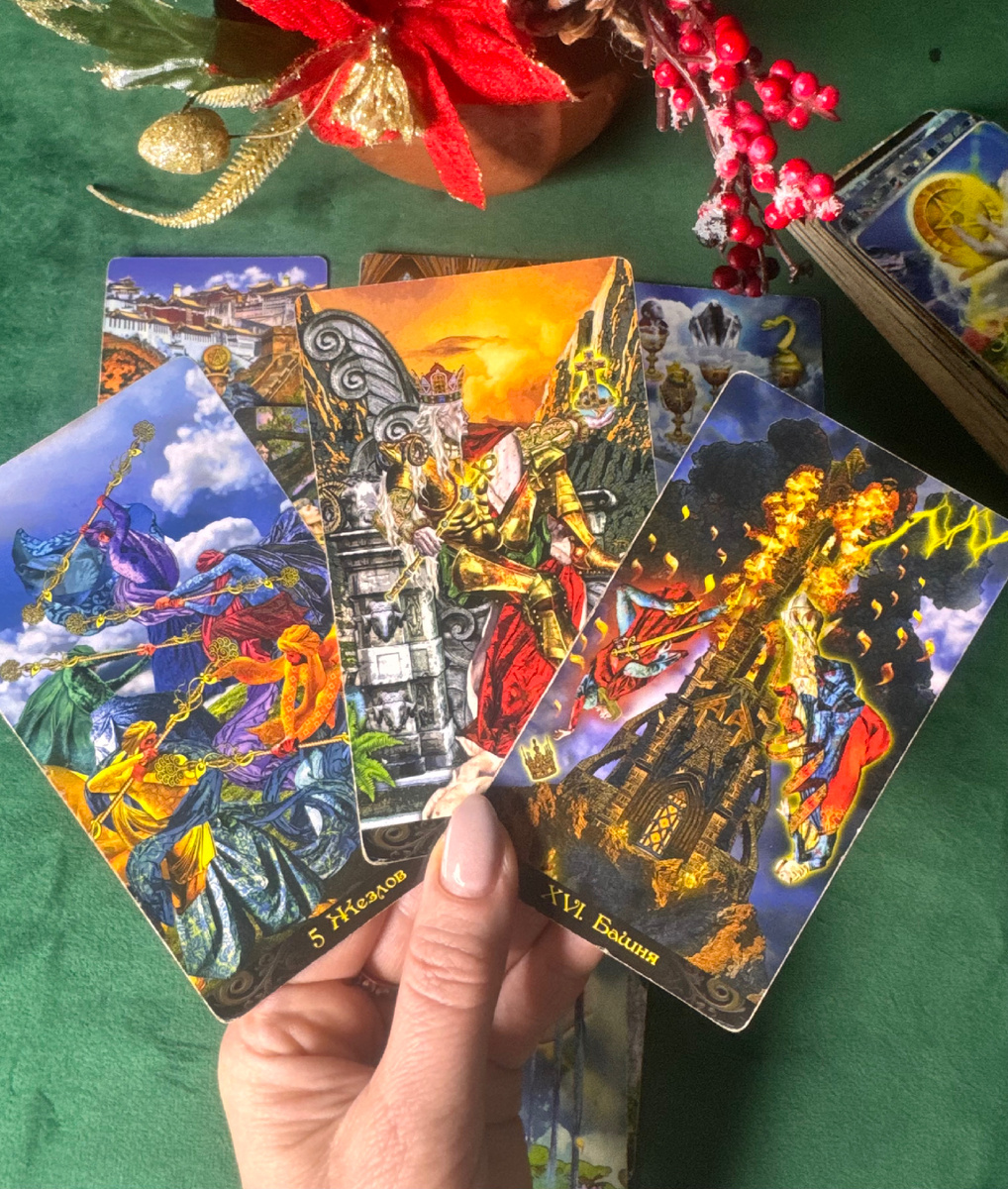 Башня: А это — результат. Карта внезапного краха иллюзий и громкого разрыва. Возможно, прозвучали слова, которые уже не забрать, или кто-то буквально «хлопнул дверью». Общение рухнуло в одночасье, оставив после себя чувство опустошения и шок. Это был болезненный, но очищающий разряд.