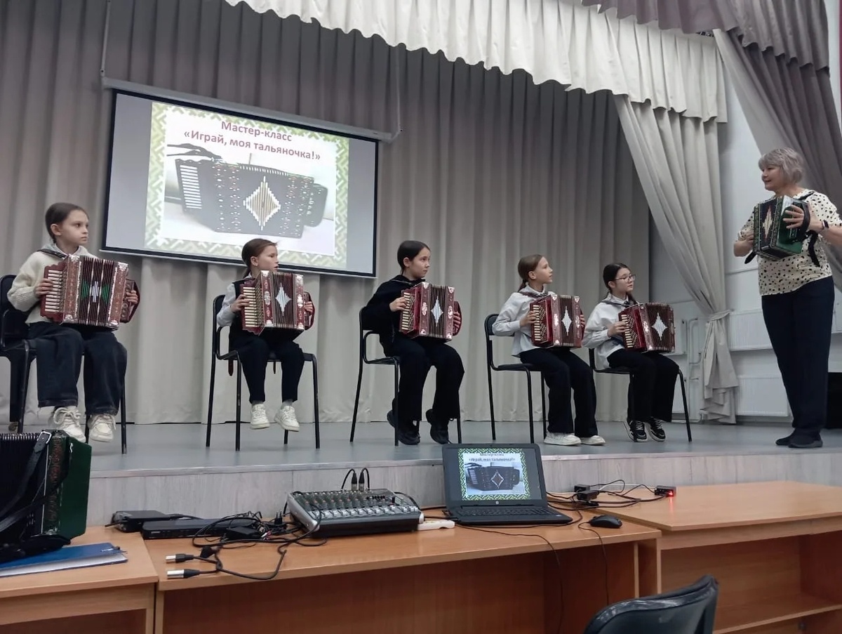 В обновленной Детской школе искусств города Янаула Республики Башкортостан для обучающихся лицея имени Героя Советского Союза Виктора Лоскутова прошел мастер-класс игры на тальянке «Играй, моя тальяночка!». Познакомиться с народным инструментом школьникам помогло участие в программе «Пушкинская карта» национального проекта «Семья». Школьники узнали о том, что название «тальянка» появилось из-за сходства с инструментами, на которых играли уличные бродячие иностранные музыканты, в основном итальянцы, которых в народе называли «тальянцы». Затем прошла практическая часть мастер-класса, которая очень понравилась слушателям, так как им была представлена возможность принять участие в совместном музицировании и разучивании народной мелодии «Авыл кое». Школьники с удовольствием пробовали играть на инструменте. Ребята получили массу положительных эмоций и зарядились хорошим настроением. «Надеемся участие в мастер-классе подтолкнет их к дальнейшему освоению игры на тальянке, а в итоге приведет к