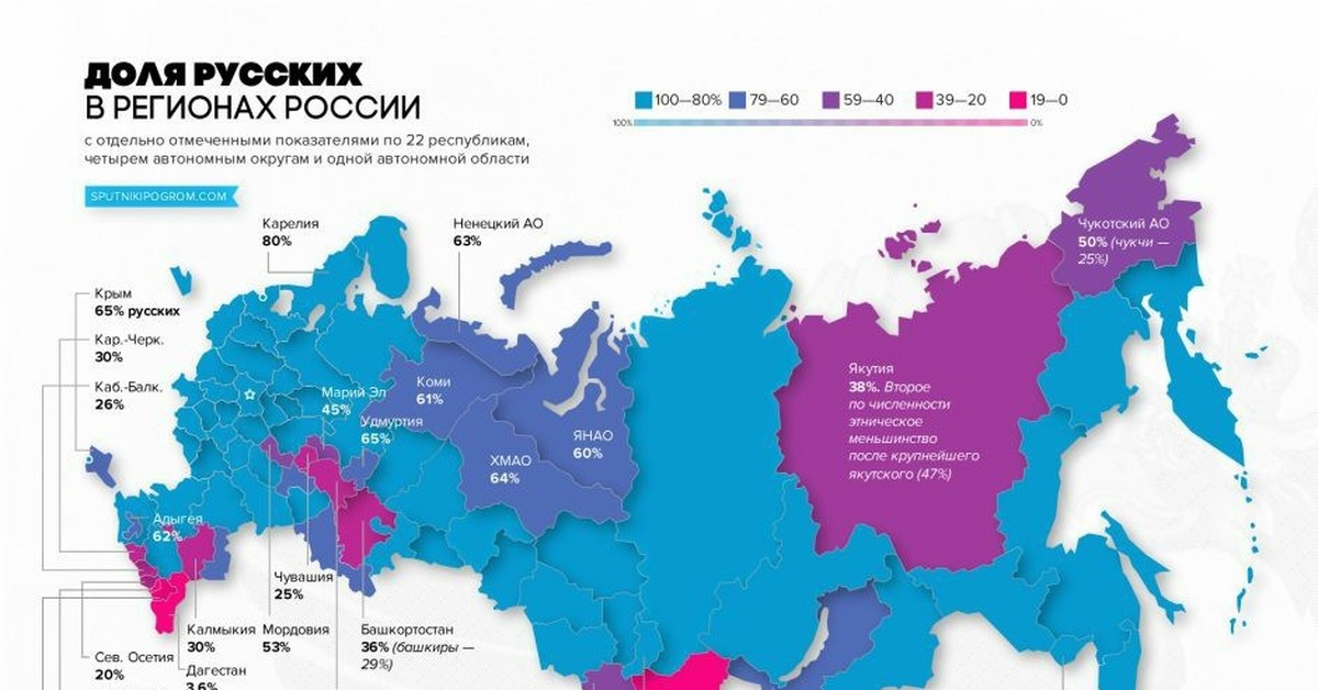 Статистика по субъектам федерации: где сосредоточено больше всего русских