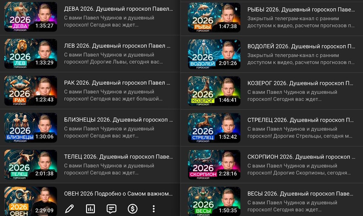 Прогноз на январь уже начинаю выкладывать (пока в закрытой группе), в открытом доступе уже на предстоящей неделе! Напомню, что с Новолуния 20 декабря - повышение цены подписки +25% что дает подписка: +подробные видео на 2026 по знакам (на скрине видно объем работы, в открытом доступе - кратко по 20мин) +индексы на 2026 и индексы на январь уже доступны 🌙 +ранний доступ к видео +можно строить прогнозы не общие, а полностью личные +чат ИИ для работы с прогнозами +и просто много кружочков и историй от Павла 🙃 участие в подписке: руб евро