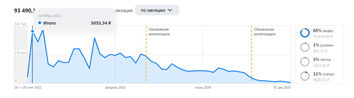 На Youtube, минимальная сумма для вывода была 100$. Первую выплату я получил в начале 2018 года. Скажу так, как только деньги пришли на карточку, так сразу же получил новый толчок работоспособности. Именно тогда, я открыл ИП и начал снимать видео очень много. Выходило по одному видео в день, это дало результаты, подписка увеличилась, соответственно начал расти доход. Следующие 100$, я накопил уже за 8 месяцев. Я продолжал работать и к 2022 году минимальную сумму я накапливал уже за 3 месяца. Подписчиков было более 5 тыс человек. О том, что Youtube заблокируют, я догадывался с осени 2020 года. Последнюю выплату я успел получить 26 февраля 2022 года, а дальше все плохо. Монетизацию нам закрыли, смысл продолжать вести канал, был потерян. Если это работа, ради которой ты трудишься и от этой работы ты не получаешь материальной выгоды, значит все. Именно тогда я решил полностью удалить канал на Youtube. Тем более с весны 2021 года я перешел на Дзен и стал переносить видео Youtube на Дзен. Здесь мне монетизацию открыли через месяц, так как материала было очень много. Ежедневно выкладывал по два видео. Первые выплаты стали хорошим бонусом. Уже к осени в течении месяца удавалось заработать 5 тыс рублей, тем самым перекрывал все расходы на оплату интернета и телефонов своим семейным. Канал на Дзене начал расти, стали появляться знакомые.