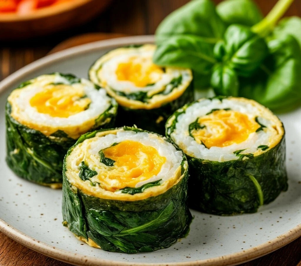 Вкусный и полезный перекус: РОЛЛЫ-«КИМИБАПЫ» С ОМЛЕТОМ И ШПИНАТОМ Мяу, мои поклонники азиатской уличной еды и полезных перекусов! 🐱🍙 Хотите съесть что-то сытное, но не тяжёлое? Корейские «кимибапы» (роллы с рисом и начинкой) — идеальный вариант! У нас вегетарианская версия с нежным омлетом и шпинатом. Их удобно брать с собой, они красиво выглядят и утоляют голод надолго. Заворачиваем вкус в нори! 🌯 ИНГРЕДИЕНТЫ (на 2 порции, 4-6 роллов): 🧾 ·Рис для суши (круглозерный) — 100 г сухого (получится ~300 г готового) 🍚 ·Рисовый уксус — 1 ст.л., сахар — 1/2 ч.л., соль — 1/4 ч.л. (для заправки) ·Яйца — 2 шт. 🥚 ·Шпинат свежий — большой пучок 🥬 ·Морковь — 1/2 шт. 🥕 ·Соевый соус — 1 ст.л. ·Кунжутное масло — 1 ч.л. ·Кунжут черный и белый — для посыпки ·Листы нори — 2-3 шт. ВРЕМЯ ПРИГОТОВЛЕНИЯ: ⏰ 40 минут СЛОЖНОСТЬ:🐾 Нужна сноровка (закрутка роллов) ПОШАГОВЫЙ РЕЦЕПТ: 👩🍳 1. Рис: 🍚 Сварите рис согласно инструкции. Готовый горячий рис переложите в миску, полейте смесью рисового уксуса,