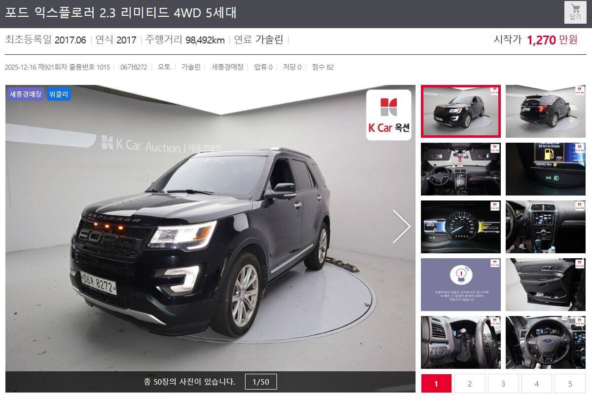 🔥 Авто с закрытого аукциона! 🚗 Марка / Модель: FORD EXPLORER 2.3. 4WD 📅 Год выпуска: 2017/06 🔢 Пробег: 99.500км 💰 Стартовая цена: 12.700.000WON (8.760$) 📌 Автомобиль попал на закрытый аукцион — отличная возможность купить машину по цене значительно ниже рынка. ⚙️ Техническое состояние соответствует данным аукциона. Машина доступна для осмотра/проверки. 🎯 Возможна доставка, оформление и помощь в участии. 📞 Для подробностей, отчетов по авто и участию в торгах — пишите в личку!