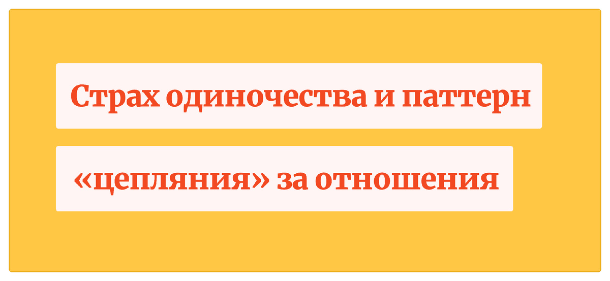 Алина два года встречается с Сергеем, который периодически исчезает, не выполняет обещания, одалживает у нее деньги и критикует ее внешность. Подруги в один голос твердят: «Да брось ты его!». Но Алина каждый раз находит оправдание: «У него сложный период на работе», «Он не виноват, что у него было трудное детство», «А кто его тогда будет поддерживать, если не я?». Мысль о расставании вызывает у нее физическую тошноту и ощущение черной пустоты впереди. Она боится не столько потерять его (его-то как раз и нет рядом эмоционально), а остаться с ощущением, что она — плохая, бросившая человека в беде, и теперь обречена на одиночество. Ее цепляние — это бегство от роли «плохой» и от встречи с собой без этой привычной драмы.