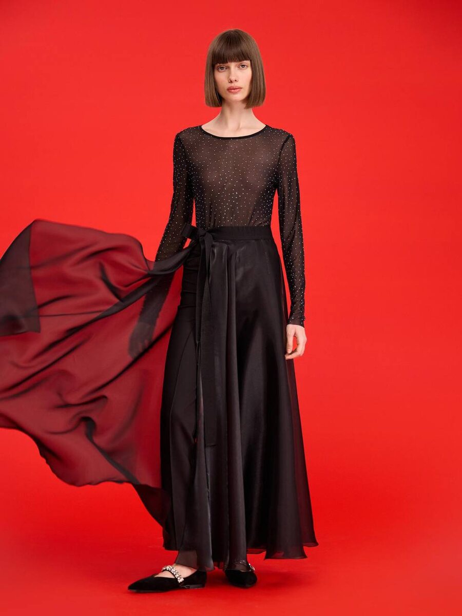 В юбке-баске есть всё: классика, женственность и элегантность. Модель из струящейся органзы на широкой ленте станет станет отличной основой любого новогоднего образа!🫶 📍ТЦ ГУМ. Салон Хорошо, 3 этаж