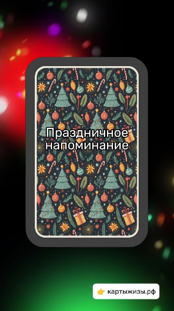 «Новогоднее Таро» — это карты про суету, огоньки и моменты, когда чудо случается не по плану, а между табуреткой и люстрой. Позвольте себе быть в подвешенном состоянии. Не всё обязано решаться сразу и красиво. Иногда свет загорается именно в той паузе, где вы просто держитесь и дышите. 💡 Прямое: стараетесь ради атмосферы — и это уже магия. ✨ Перевёрнутое: застряли в мишуре и мыслях, пора сменить угол зрения. Новогоднее напутствие: иногда, чтобы увидеть свет, нужно ненадолго повисеть вверх ногами. Все карты «Новогоднего Таро» — на картыжизы.рф #знакивселенной #картадня #картыжизы #новогоднеетаро
