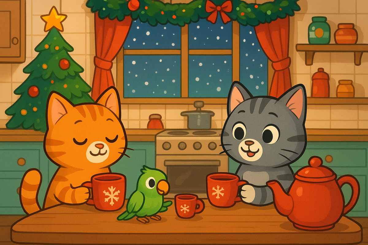 - Вот молодец какой, Добряк! – похвалил его кот Озорник, и тут он добавил: «Все решено, друзья, мы все отправляемся на поиски кошки». И все допили свой чай и оставили чашки на столе, а попугай Ворчун смотрел на них на всех со стороны с удивлением.