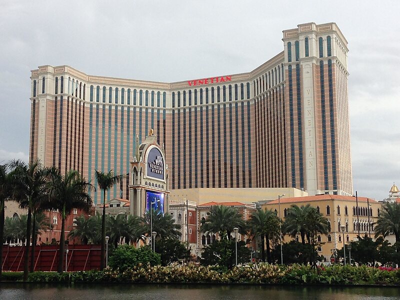 The Venetian 威尼斯人 The Venetian — 39-этажный небоскрёб высотой 225 метров, второе по высоте здание Макао. Отель построен в 2007 году в игровой зоне Котай в стиле постмодернизма, стоимость проекта составила 2,4 млрд долларов. Девелопером является американская компания Las Vegas Sands, принадлежащая миллиардеру Шелдону Адельсону. Комплекс включает в свой состав одно из крупнейших в мире казино, 3 000 гостиничных номеров, спортивно-развлекательную арену CotaiArena на 15 тыс. зрителей, центр выставок и конференций, 350 магазинов, 30 ресторанов. На территории комплекса расположены венецианские достопримечательности: колокольня и каналы, по которым плавают гондолы.