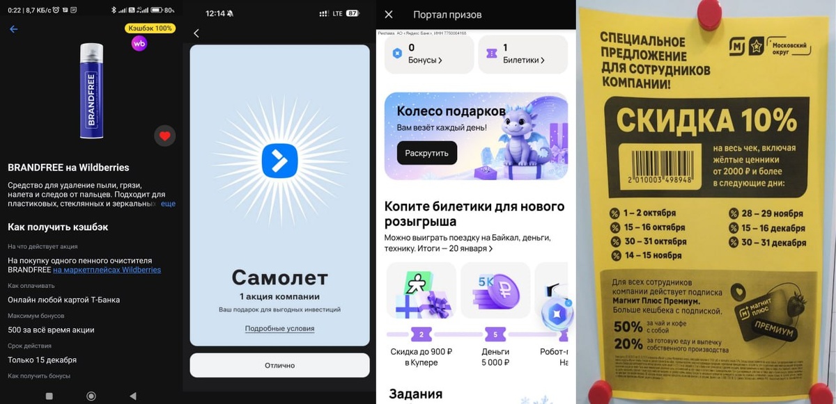 📄📰ℹ️📄 Доброе утро! Собрал для Вас интересности на утро понедельника: 🔺 В приложении Альфа-Банка в поиске по слову Альфа-Инвестиции можно найти барабан, который крутится с 15 по 19 декабря. Можно получить акцию в подарок — у меня выпала акция ВК. Чтобы получить подарок, нужно 19 декабря купить любые ценные бумаги от 1000 руб. Подарочную акцию начислят до 25 декабря. Напомню, за БС новичкам сейчас дают 10 000 руб. 💸 Сегодня в Яндекс.Пэй снова крутим барабан и получаем категорию кэшбэка на неделю. У меня выпало 15% на концерты — туфта... 🔴 Ещё в приложении теперь можно поменять дизайн виртуальной карты Пэй. Кому надоел белый — выбираем более яркий. Он будет отображаться при оплате смартфоном. 🔴 Некоторым персонально предлагают карту Сплит с 6 месяцами рассрочки без процентов. Если предложения нет — выгодно оформить по ссылке друга и получите 500 руб. + сейчас дают по карте Сплита 3% на все покупки. 💳 В Т-Банке сегодня в кэшбэке дня у многих клиентов — пена для стекол и зеркал и