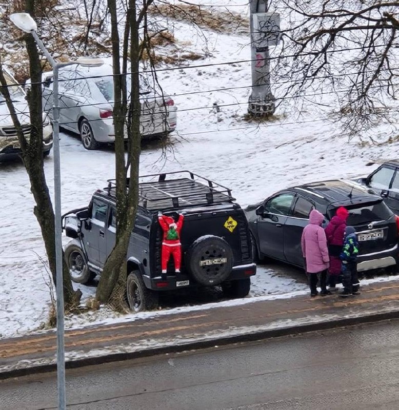 В Балашихе заметили Деда Мороза, который взбирается на крышу внедорожника🌚