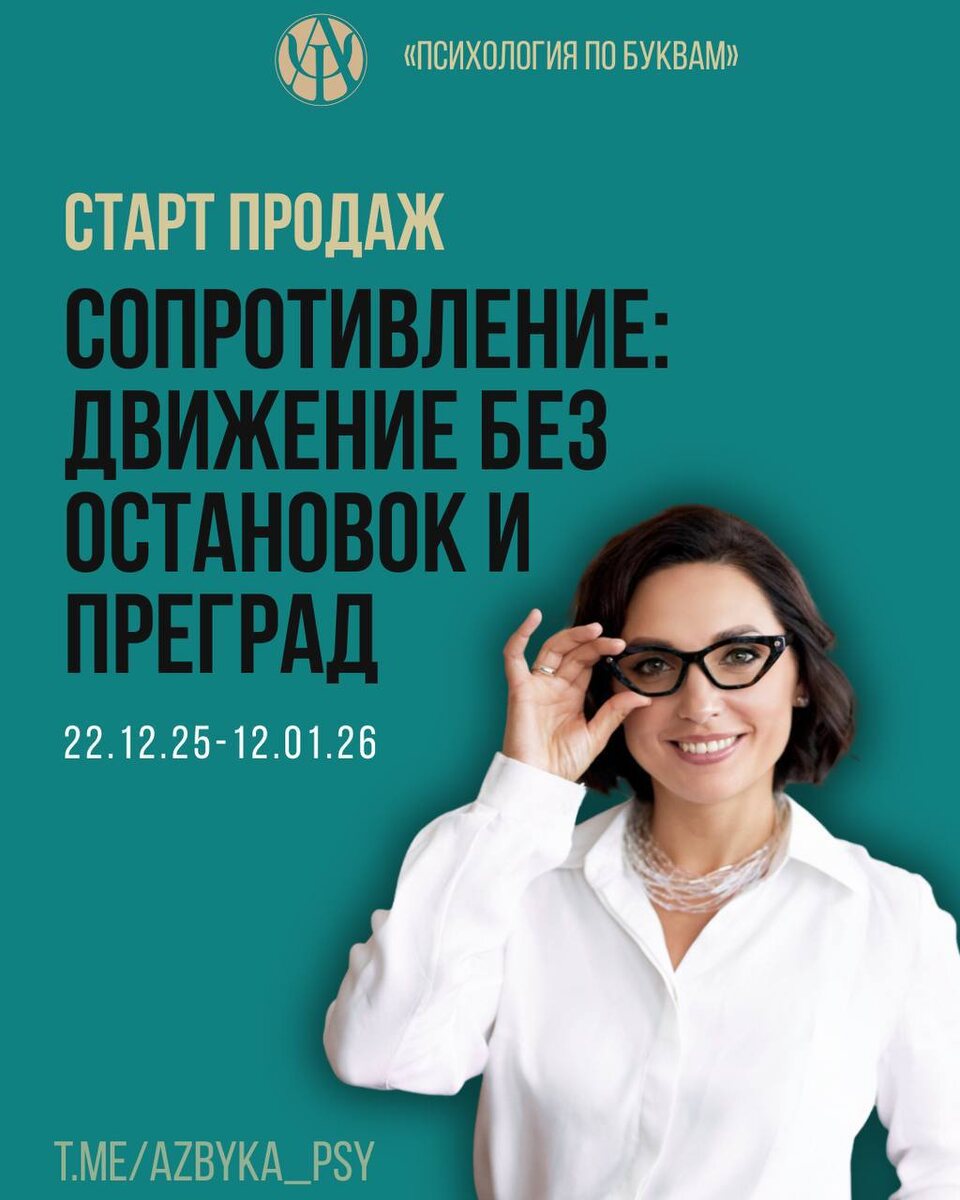 Открываю набор на 7-й курс «СОПОТИВЛЕНИЕ: движение без остановок и преград», модуль «Ё». Даты: 22.12-12.01.26 Этот курс – для тех, кто: 🧩 не понимает где усталость, а где сопротивление 🧩 чувствует что теряет энергию по непонятным причинам 🧩 сомневается в своих силах 🧩 ищет ресурс для реализации задуманного. Внутри курса: Тесты Видеоурок Задания Рекомендации Подсказки В результате: • Вы увидите где живет ваше СОПРОТИВЛЕНИЕ • Как его распознать • И каким образом обратить его в свою пользу. Доспуп к курсу Ё: https://checkout.tochka.com/adfe8f79-baeb-4320-a776-fac7e0b3510f P.S. Сделайте сопротивление СОЮЗНИКОМ! 🅰️ПСИХОЛОГИЯ ПО БУКВАМ – все ответы от А до Я, сейчас! #участие ———————————— #ментальноездоровье #тревожность #депрессия #выгорание #психологияотношений #психологияжизни #эмоции #осознаннаяжизнь #самопомощь #психологиякаждыйдень