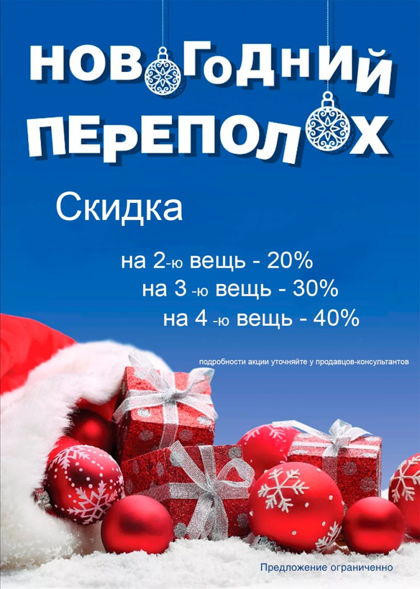 Акция к Новому году! 🎄 С 15 декабря запускаем ✨Новогодний переполох ✨ Покупайте больше - платите меньше. Скидки до -40%. Ждем Вас за покупками.❤️ Акции и скидки не суммируются. Подробности акции уточняйте у продавцов-консультантов.