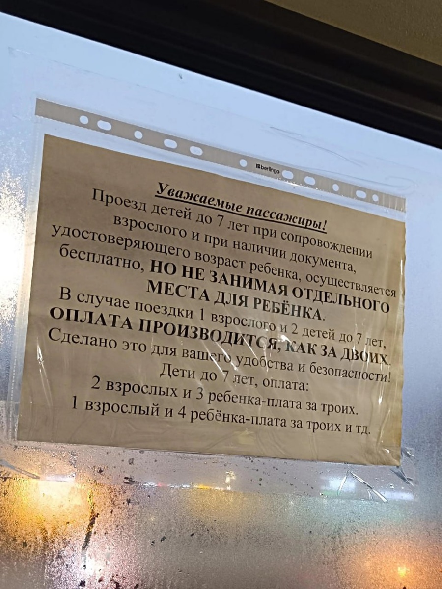 ПРОБЛЕМА ОДНОГО — РЕШЕНИЕ ДЛЯ МНОГИХ В конце ноября ко мне обратилась многодетная мама по вопросу нарушения прав пассажиров в части порядка оплаты проезда за детей в возрасте до 7 лет в общественном транспорте на маршрутах №100 и №100к и агрессивного поведения кондукторов. К своему обращению она также прикрепила фото объявления, вывешенного в автобусе, регламентирующее порядок оплаты проезда. Испытав внутреннее чувство неправомерности всего происходящего, я незамедлительно подготовил обращение по вопросу нарушения «Правил пользования пассажирским транспортом в городе Иванове» в Департамент дорожного хозяйства и транспорта Ивановской области. По результатам проведённой проверки было установлено, что указанные объявления в салоне автобуса были вывешены водителем и кондуктором автобуса самостоятельно, в настоящее время удалены, а с сотрудниками автопредприятия проведен внеплановый инструктаж на тему правил перевозок детей в общественном транспорте. Заявительница также подтвердила, что