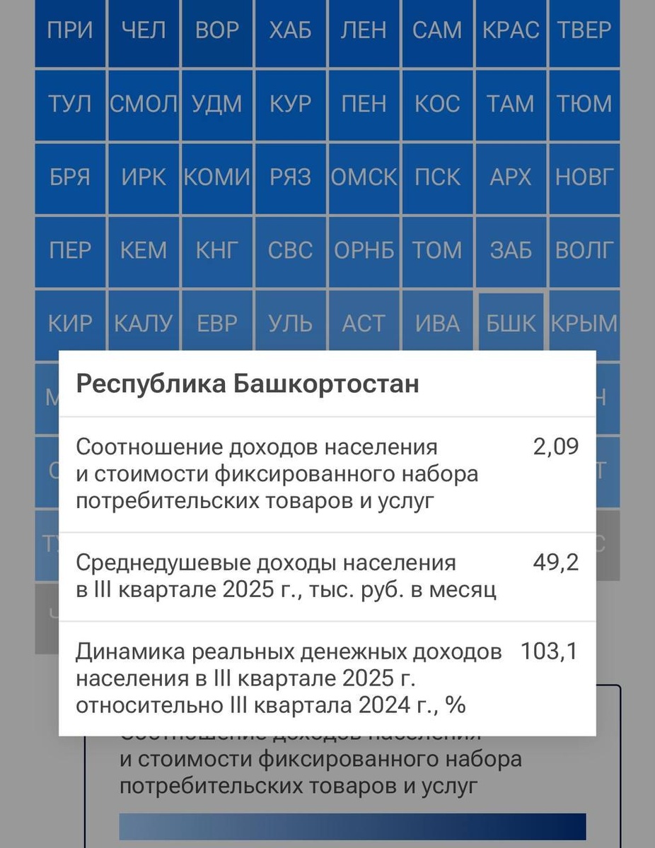💰 Башкортостан опустился на 65-е место среди регионов России по доходам населения — годом ранее республика была на 49-й строчке