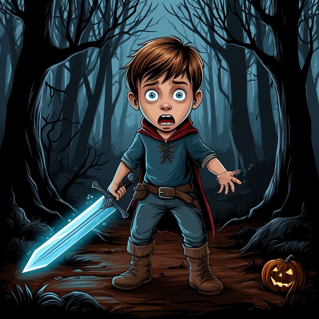 Опять сначала скучно день тянулся Пока под вечер мальчик не наткнулся Попутно на обширный, тёмный бор Такой ужасно страшный, просто бр-р-р!!! * Сворачивать нельзя. Яги клубочек Уверенно катился между кочек, Но на одной из сумрачных полян Сидящий в позе Будды истукан Сказал вдруг: —Подожди, прошу как друга. Меч тотчас блажью завопил с испуга. Ведь статуя не просто ожила Чуть-чуть не укусила! Не смогла Лишь потому, что отскочил парнишка И погрозил: —Но-но! Я не зайчишка! Старуха тотчас: —Извини милок, Дай мне еды, а? и воды глоток. Нет сил ни встать, ни приготовить кушать. Меч: —Ну её … Не стал Алёша слушать Приятеля, бабусю пожалел, До темноты набрать грибов успел, Сварил, крылечко починил избушке, Помог добраться до неё старушке, На печку уложил и накормил, Дров заготовил и уснул без сил. Семь дней пацан выхаживал больную. Клинок ворчал: —Всё делаешь впустую. Она тебя могла ведь растерзать! Подросток: —Людям надо помогать. Гражданка эта вовсе и не злая, Немножко очумела, голодая