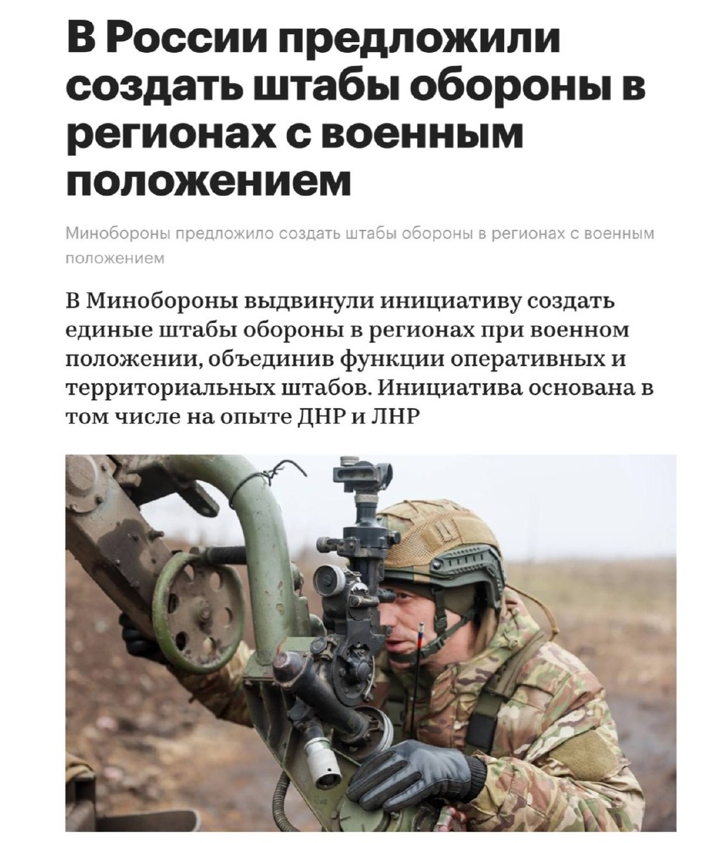 Губернаторы и мэры будут руководить обороной в период военного положения в России. Об этом говорится в законопроекте о создании единых штабов в регионах, который подготовило Минобороны РФ. Изменения не коснутся Москвы, Санкт-Петербурга и Севастополя. Заря | Новости - Подписаться