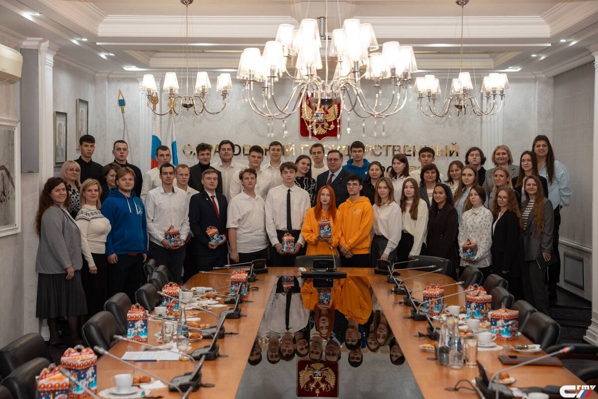 В СГТУ имени Гагарина Ю.А. прошла встреча руководства университета с участниками специальной военной операции и членами их семей, которые являются обучающимися Политеха. Открывая мероприятие, ректор СГТУ, профессор Сергей Наумов выразил глубокую благодарность защитникам России, присутствующим в зале и находящимся сейчас на передовой, а также их близким: «Каждый из вас проявил себя как настоящий человек, гражданин и достойный сын Отечества – выбрал остаться со своей страной и встать на защиту всего, что дорого. Мы безмерно гордимся вашим мужеством, стойкостью, вкладом в грядущую победу и, конечно же, тем, что вы сегодня являетесь частью нашей большой политеховской семьи». Сегодня в саратовском Политехе по программам высшего и среднего профессионального образования обучается 53 участника СВО. Свыше 180 ребят – дети участников спецоперации – получают в университете высшее образование. Кроме того, в Профессионально-педагогическом колледже и филиалах в Петровске и Энгельсе обучается 321 ст