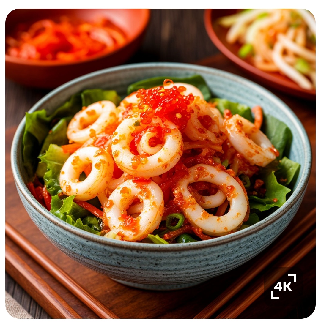 Салат из кальмаров с болгарским перцем и корейской приправой — это яркое, пикантное и полезное блюдо, которое идеально подойдет как для повседневного стола, так и для праздничного застолья. Основные ингредиенты этого салата — нежное мясо кальмаров, свежий болгарский перец, измельчённый в блендере, а также острая корейская приправа, придающая блюду характерный восточный оттенок. Ниже приведён подробный рецепт приготовления этого салата, который не требует много времени и усилий. ### Ингредиенты: - Кальмары (тушки) — 400 г - Болгарский перец (красный или желтый) — 1 большой плод - Корейская приправа для овощей — 1,5–2 столовые ложки - Чеснок — 2 зубчика - Лук репчатый — 1 средняя головка - Растительное масло (лучше оливковое) — 2 столовые ложки - Лимонный сок — 1 столовая ложка - Свежая зелень (петрушка, кинза или укроп) — по вкусу - Соль, перец — по вкусу ### Подготовка ингредиентов: 1. Кальмары тщательно промыть под холодной водой. Если используете замороженные туш