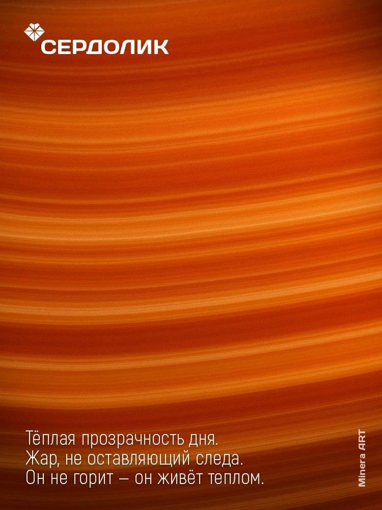Сердолик — тёплый. Не как чувство, а буквально — на коже он дышит мягким теплом. Цвет — от светло-оранжевого до тёмного янтаря, часто с плавными переходами и полупрозрачной глубиной. На ощупь — гладкий, округлый, не давящий. Его не хочется отпускать сразу — не потому что он зовёт, а потому что легко быть с ним рядом. Он не делает тише. Он делает теплее. И этого может быть достаточно. Некоторые вещи не объясняют себя. Они просто чувствуются как "да". ___________ Minera ART — направление, в котором мы пробуем почувствовать каждый минерал — и делимся результатом в своей группе.