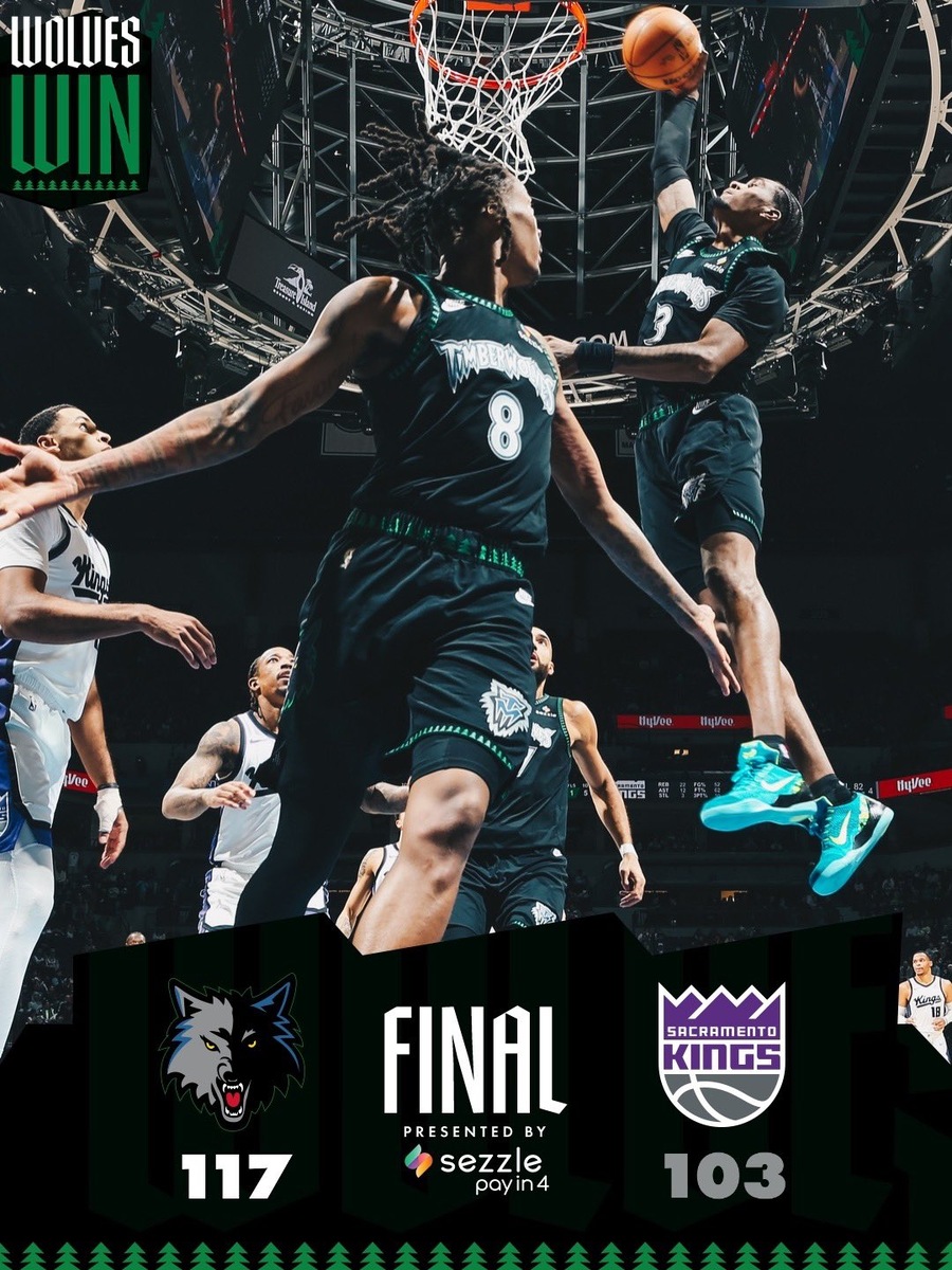 МИННЕАПОЛИС — Джулиус Рэндл набрал 24 очка и сделал девять подборов, став лидером «Миннесоты» в победе над «Сакраменто Кингз» со счётом 117–103. Это был второй подряд матч «Тимбервулвз» без Энтони Эдвардса. Джейден Макдэниелс набрал 21 очко, а Наз Рид добавил 20 очков и 11 подборов для «Тимбервулвз» (17–9). Команда выиграла семь из восьми последних матчей и частично взяла реванш за поражение 117–112 в овертайме в Сакраменто 24 ноября, когда «Миннесота» упустила преимущество в 10 очков менее чем за три минуты до конца основного времени. Донте Дивинченцо записал на свой счёт 18 очков, шесть передач и четыре перехвата, а Бонс Хайленд набрал 18 очков, выйдя в стартовом составе второй матч подряд вместо Эдвардса, который пропускает игры из-за болезненности правой стопы. Разыгрывающий Майк Конли также не играл из-за травмы ахиллова сухожилия. Руди Гобер, сделавший 12 подборов за 20 минут, покинул матч в третьей четверти по личным причинам, как сообщили в команде. У «Кингз» Демар Дерозан