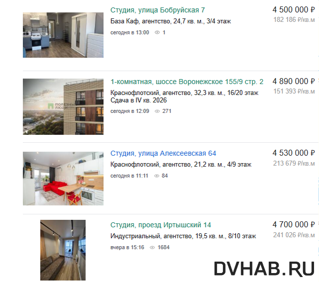 По данным федеральных СМИ, Хабаровск вошел в число российских городов, где найти квартиры в новостройках дешевле 5 миллионов рублей практически нереально. Это совсем крошечный сегмент рынка, который составляет менее пяти процентов. Подтверждают эту информацию и риелторы. - Квартиры стоимостью до 5 миллионов можно найти у нескольких застройщиков, но это, как правило, только студии, причем на невысоких этажах, примерно до 5. Площадь там, как правило, от 20 до 30 квадратов, но бывает и меньше - вплоть до 15. И районы достаточно удаленные от центра, - отметила Татьяна Милиневская, риелтор. Эта информация подтверждается и данными сайта «Фарпост». Согласно ему, из 5,1 тысячи объявлений о продаже квартир в новостройках стоимостью меньше 5 миллионов есть только 131 предложение не более чем от пяти застройщиков. В основном это дома на Воронежской, Павла Морозова, Ореховой сопке, Базе КАФ. Стоит еще отметить, что часть домов из объявлений уже сданы, а квартиры - обустроены, так что это жилье хот