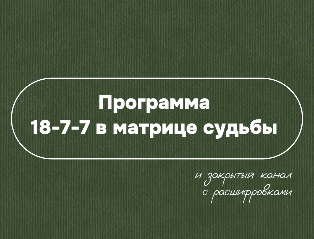 Приветствую на канале «Матрица судьбы». Сегодня разберем программу 18-7-7 в материальной карме матрицы судьбы: На картинке показала, где находится материальная карма и как выглядит программа 18-7-7 на мат. карме ⠀ Материальная карма — это материальный «багаж» прошлых воплощений, который показывает глубинные, часто бессознательные установки о материи, кармические уроки в материальных аспектах, которые были не пройдены в прошлом и сейчас являются материальной задачей. ⠀ Учитывая программу 18-7-7, сразу можно сказать, что материальное благосостояние налаживается ЧЕРЕЗ преодоление (7) иллюзий, сомнений и страхов (18) на пути к ЯСНЫМ целям (18-7). ⠀ ЕСЛИ ПРОГРАММА В МИНУСЕ, то, начиная с тела, может проявляться ярко выраженная психосоматика: неосознанные страхи, тревоги и подавленные эмоции (18) проявляются как спазмы, проблемы с ЖКТ , кожные заболевания, внезапные травмы (особенно ног, опорно-двигательного аппарата, суставов), аварии, несчастные случаи + возможно переутомление и истощ