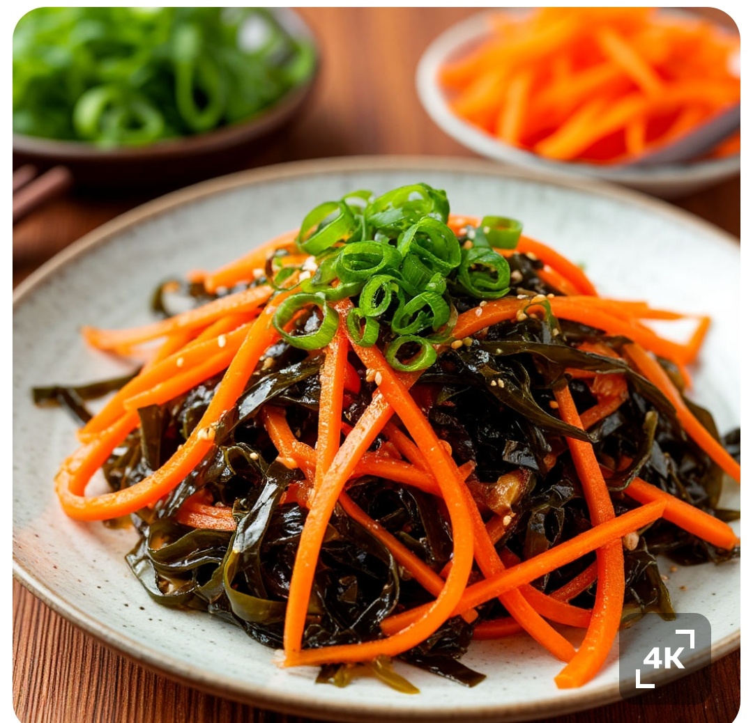 Рецепт салата из морской капусты и корейской морковки Морская капуста и корейская морковка — это два популярных ингредиента, которые отлично сочетаются в салатах. Их вкус дополняет друг друга, а польза для здоровья делает такое блюдо особенно привлекательным. Этот салат легко приготовить, он яркий, аппетитный и одновременно полезный. Ингредиенты: - Морская капуста (консервированная) — 200 г - Корейская морковка — 150 г - Репчатый лук — 1 небольшая головка - Чеснок — 1 зубчик - Растительное масло (лучше оливковое или подсолнечное рафинированное) — 2 столовые ложки - Соевый соус — 1 столовая ложка - Лимонный сок — 1 чайная ложка - Свежая зелень (укроп, петрушка) — по вкусу - Соль, черный молотый перец — по вкусу Приготовление: 1. Подготовка ингредиентов. Морскую капусту промойте под проточной водой, чтобы убрать лишнюю соль и возможные консерванты. Затем отожмите ее, чтобы удалить излишки жидкости. Корейскую морковку можно использовать готовую из магазина, а мож