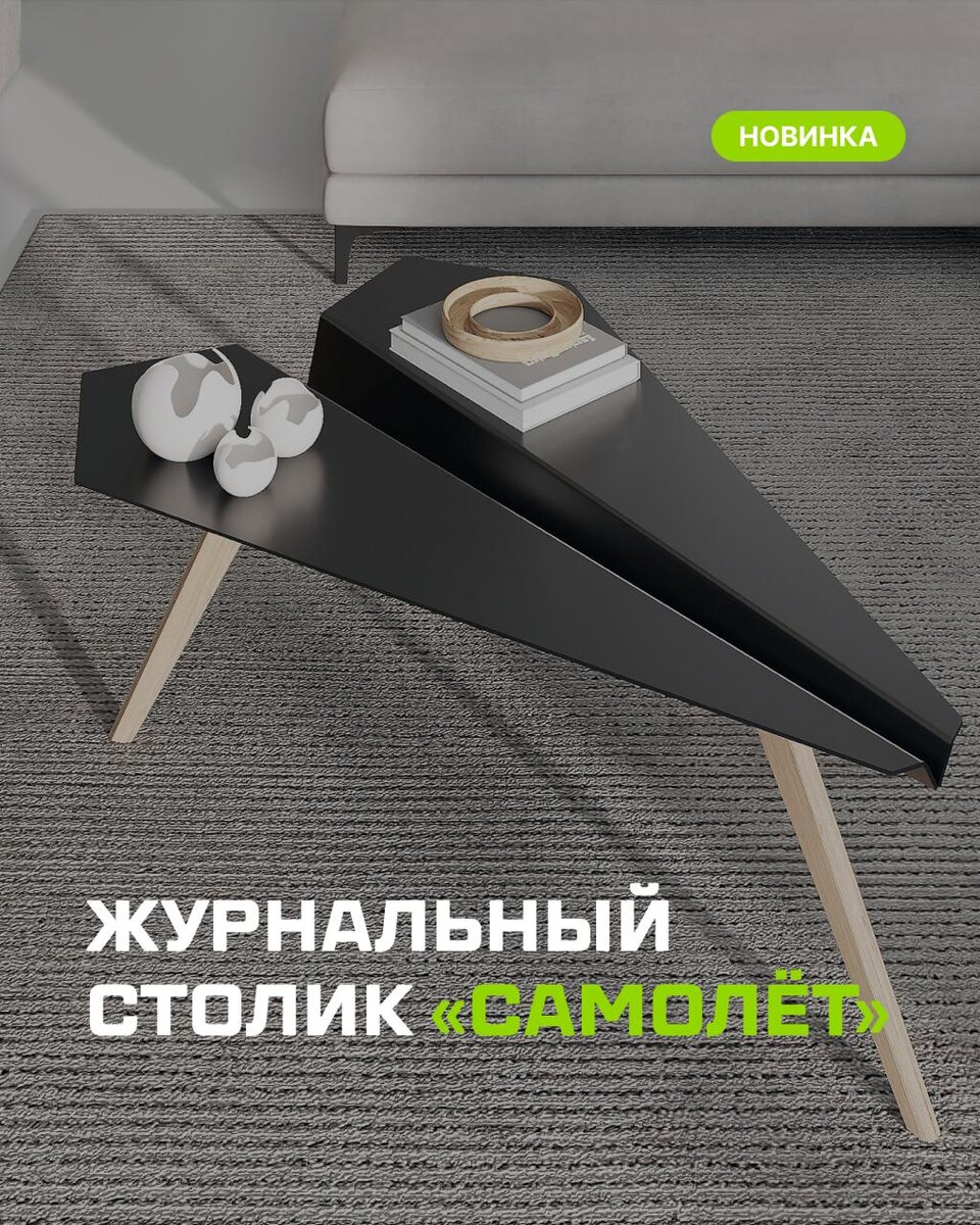 Журнальный столик «Самолёт» — полёт эстетики в премиальном интерьере Ищете элемент, который станет ключевым акцентом в вашем пространстве? Наш дизайнерский журнальный столик «Самолёт» — это сочетание скульптурной формы, безупречных пропорций и изысканной лаконичности. Его силуэт, напоминающий крыло самолёта, привносит в интерьер динамику, лёгкость и тонкую метафору движения. Цветовые решения: ⚫️ Монохромная палитра — угольно-чёрный, кристально-белый, глубокий графит Создана для современных премиум-интерьеров: ⚫️ Минимализм — акцент на форме и чистоте линий ⚫️ Ар-деко — игра контрастов и благородная строгость ⚫️ Современная классика — вневременная элегантность и сдержанность ⚫️ Лофт — индустриальная эстетика с элементом скульптурности 🟢 Полихромные оттенки Возможность индивидуального окрашивания в глубокие или сложные тона — бордо, тёмный хаки, приглушённый лазурный, для точечного согласования с палитрой интерьера или создания контрастного акцента. Столик «Самолёт» — это не просто