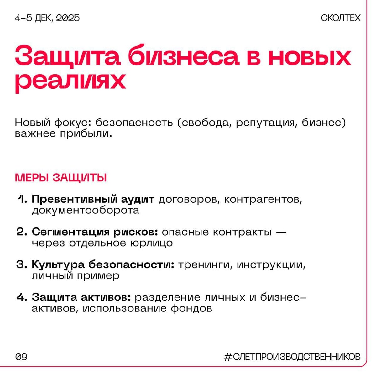 В декабре 150 собственников из 40 городов на закрытом Слёте производственников отказались от красивых графиков. Они спросили друг друга: «А что на самом деле работает?» Ответ получился жёстким. 2026 — не год «высоток» (тотального роста). Это год «умного дома»: тотальной эффективности. Проблемы, которые обсуждали на Слёте: ▫️ Падение продаж — 61% ▫️ Кадровый голод — 48% ▫️ Давление на издержки — 27% Решения, которые нашли: 1️⃣ Не расширяться, а укреплять. Безопасность (личная и юридическая) — новый KPI. Рискованные контракты — в «отдельную коробку». 2️⃣ Не нанимать, а вовлекать. 70% улучшений могут инициировать операторы, если дать им систему WCM и сократить отчётность мастерам. 3️⃣ Не хайпить, а внедрять. 3D-принтер — не игрушка, а «цифровой склад» и способ снизить вес детали на 60%. Эти выводы не из презентаций. Их дали практики 150 производств в живом диалоге. Следующий такой разговор — в апреле 2026. Места традиционно разбирают быстро. Потому что здесь говорят о том, о чём мо