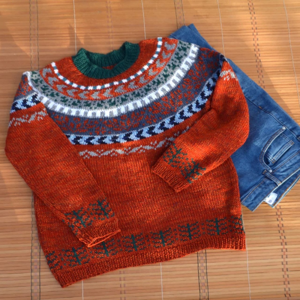В наличии остался один свитер. Может успеть к кому-то под ёлочку 🌲😍 На телефоне немного в красный уходит, в жизни красивый рыжий цвет. Идеально с джинсами. Пряжа: меринос, твид, очень немного полиамида. Ширина 50 см, длина 60.