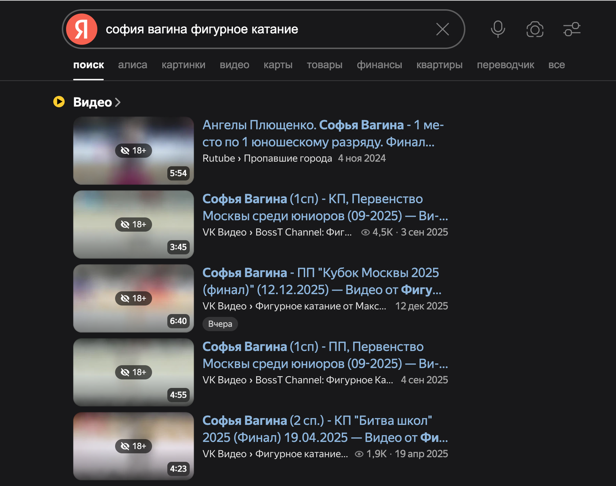 Да, заголовок, что и говорить - громкий. Но правдивый. Действительно, так случилось, что по итогам Финала Кубка Москвы на первой строчке оказалась Алиса Чистякова, подопечная Алексея Моторина. Алиса обошла по итогам двух прокатов и Екатерину Корчажникову и Анну Докукину. К сожалению, обе девушки, представляющие ТШТ, лишились своего шанса на победу. Причем отдали все сами. Что Екатерина Корчажникова, что Анна Докукина упали с четверных прыжков. У Кати так вообще был очень солидный контент: три квада, но по факту удалось исполнить только один. Анна не смогла выехать свой четверной тулуп, ну и даже запас после короткой программы не позволил ей сохранить лидерство. Вот они судейские игры, вот Вы меня конечно извините за отступление от темы, но я в рамках настоящей статьи, позволю себе обратиться к техническим специалистам Яндекса: не должно быть так, что если ИИ видит "некое совпадение" в имени или фамилии того или иного человека с контентом "18+", то автоматически все ролики с его уча