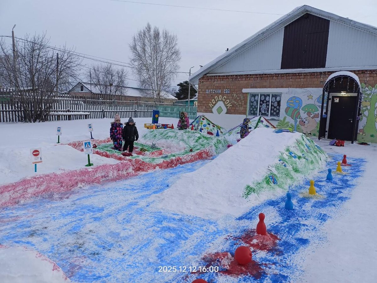 Снежный городок в стиле ПДД обустроили в детсаду Назаровского округа