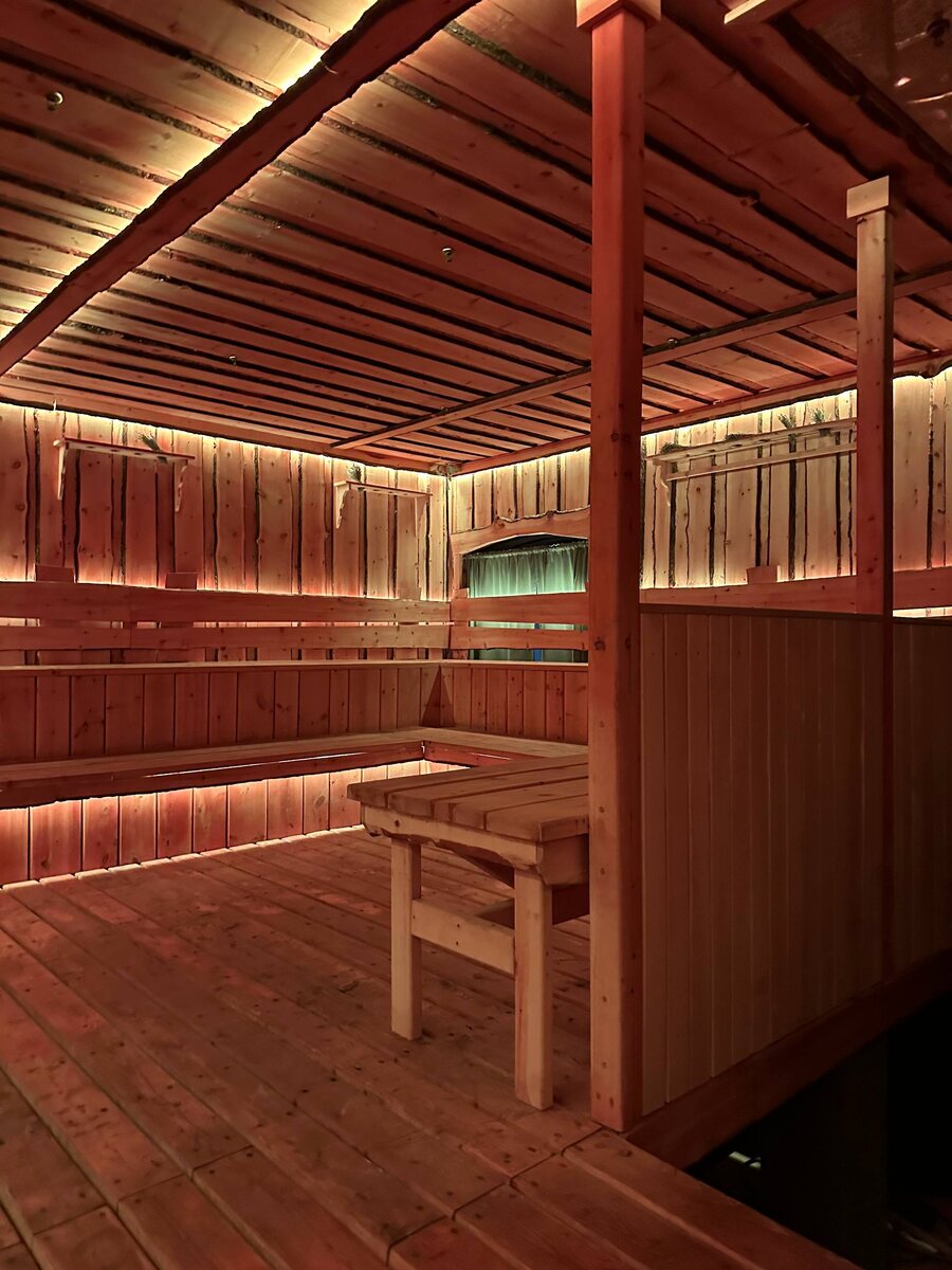 И стоят в глазах царя Тридцать три богатыря, Все красавцы молодые, Великаны удалые, Все равны, как на подбор, С ними дядька Черномор. В таком составе мужской банный клуб «Огниво» каждый вторник с 9.00 открывает свои двери и объятья для прекрасных дам. Для первого раза ощущение себя в мужской бане было необычным… Но как только заходишь внутрь зоны отдыха, сразу окунаешься в щебет барышень, купальников и просеки. Я не сноб, но даже мне, в 9 утра для бани было как-то рановато. Красиво, дорого, ряжено, стильно. Говорят, у них там еще концерты проходят. Гастрономические изыски подают. В общем все как любят мужчины. В женский день анимацией для дам была Снегурочка с рунами. Что по пару? А там — 2 больших коллективных парных, индивидуалка, купель. Современные бани не предусматривают самостоятельное использование скрабов, мочалок и тд. По крайне мере, там все очень компактно. Уже второй новый банный комплекс, а лавочки и тазы стоят аккурат, не привлекая к себе внимание. Общий пар хороший