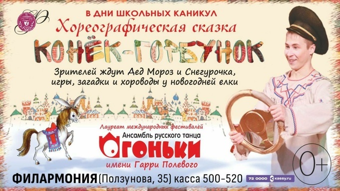 Зрителей ждет хореографическое представление для детей и взрослых на музыку Родиона Щедрина Алтайская краевая филармония вновь представит публике полюбившийся балетный спектакль "Конек-Горбунок". Знаменитая сказка, поставленная на музыку Родиона Щедрина, будет исполнена ансамблем русского танца "Огоньки" имени Г.Н. Полевого под руководством балетмейстера-постановщика Надежды Калининой из Санкт-Петербурга и обещает захватить внимание каждого зрителя. В этой постановке магия возникает благодаря гармоничному сочетанию великолепной музыки, мастерства танцоров, красочных костюмов, выразительного художественного слова и захватывающих видеопроекций. "Конек-Горбунок" станет прекрасным зрелищем как для юных, так и для взрослых зрителей, утверждают организаторы. Больше материалов на amic.ru.