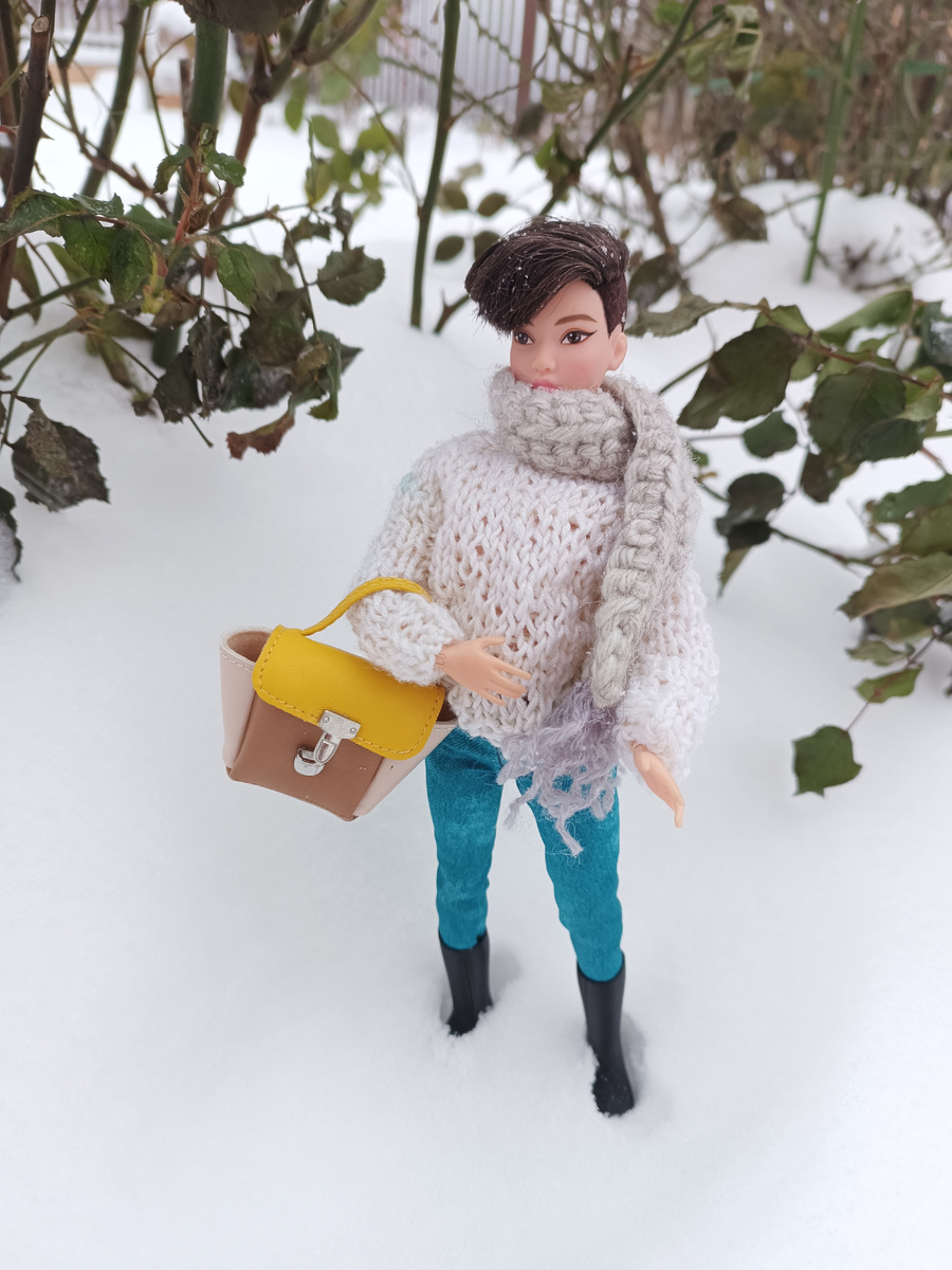 Всем привет! Давно не публиковала фотосессии кукол, надо исправляться. Тем более что у меня все ещё две девочки ждут прогулки. А сегодня у нас Зоя оценивает снег в мире куда её закинуло. Фото получилось мало, было холодно и у меня замёрзли руки. Но в следующий раз я одену сенсорные перчатки... И будет много фото! На фоне просто белого снега было очень скучно. Вечно требуется что-нибудь яркое. Вначале это была ещё зелёная роза, затем барбарис. В барбарисе фото получились волшебными✨. Зою я одела холодно🥶. Хотелось модельной красоты. Теперь знаю - моей девочке не очень идёт. Длинные брюки делают её высокой, а по сравнению с детским личиком это смотрится странно. Зоя ворчит что слишком холодно. Любимое фото 💕 Маленький лайфхак: Наверное многие любят высокие сапоги на куклах. Но надеть их поверх джинс тот ещё квест. Всё задирается и мнётся. Легче всего зафиксировать стопу в джинсах резинкой. Держится хорошо, а ещё в нашем случае пластиковые сапоги не царапают ножки куклы