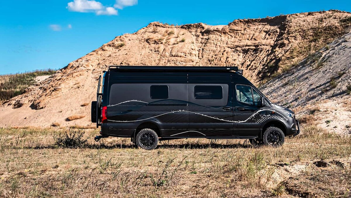 Мелкие производители автодомов чаще показывают нестандартные планировки, чем крупные заводы. Например, мастерская VANME из Гамбурга построила автодом с красивым интерьером и открытой планировкой на базе полноприводного Mercedes-Benz Sprinter.