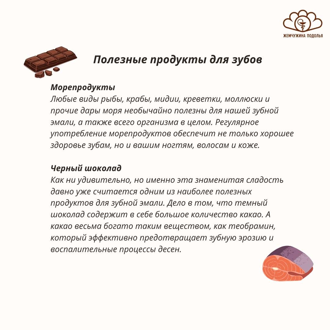 Полезные продукты для зубов 🦷 Здоровье зубов напрямую зависит от питания. Вот список продуктов, которые действительно полезны для зубов! ✅ Помните, что даже самые полезные продукты не заменяют регулярную гигиену: чистку зубов 2 раза в день, использование зубной нити и профилактические визиты к стоматологу раз в 6 месяцев. Автор статьи: Гермашова Анна Ивановна - заведующий отделением стоматологии, врач стоматолог, стоматолог - терапевт, хирург для детей и взрослых, _________ ☎️Записаться к специалистам: + 7 499 705-86-56 +7 499 400-35-33 🌐на сайте https://podolskclinic.ruц