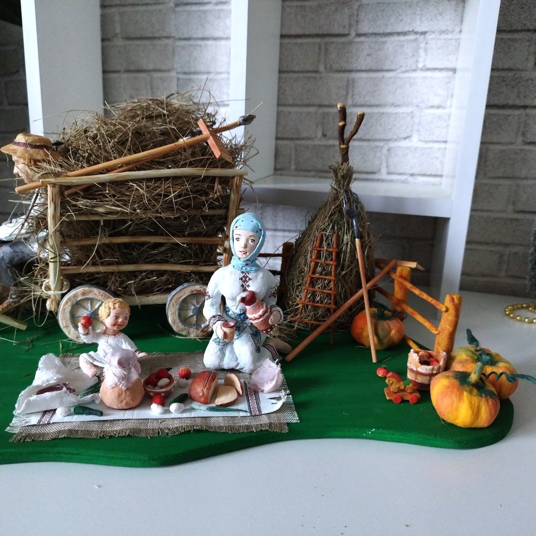 Небольшой пикничок-перекус после того как сено убрали и погрузили на телегу.