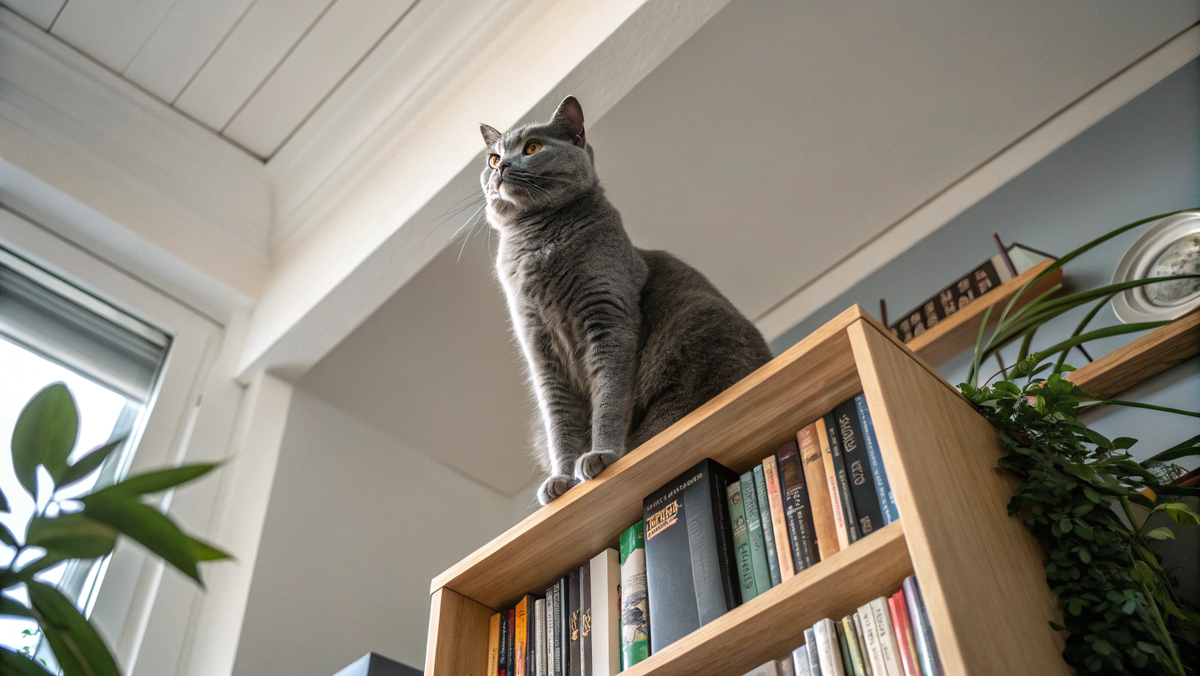 С высоты кошка видит всю комнату. Все входы, все движения, всё, что происходит. Это наблюдательный пункт. Кошка на высоте контролирует территорию. Видит, кто пришёл, кто ушёл, где еда, где игрушка, где опасность. На полу обзор ограничен. За диваном может быть что угодно. За углом может ждать угроза.