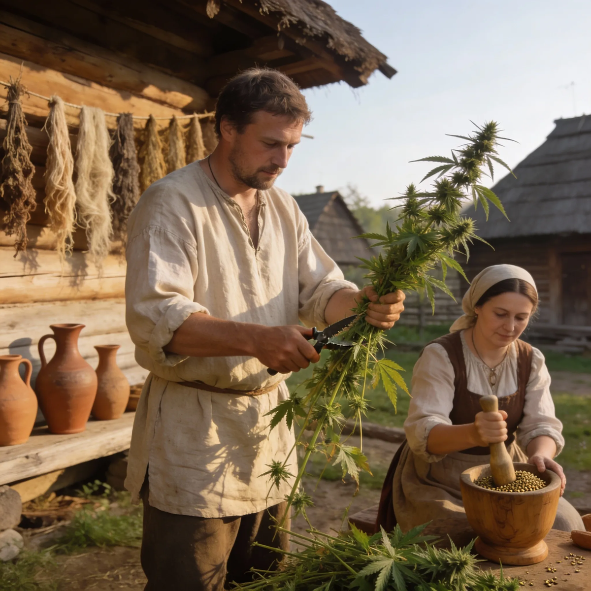 Уже в IX–X веках на землях восточных славян конопля выращивалась повсеместно. Археологические находки подтверждают использование конопляных тканей, верёвок и канатов в повседневной жизни. Конопляное масло применялось в пищу и в качестве основы для лампадного света, а волокна шли на изготовление одежды, парусов и мешковины.