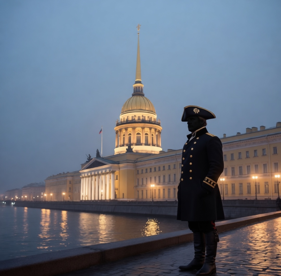 В самом сердце Санкт-Петербурга, среди трёх лучей Невского проспекта, возвышается здание Адмиралтейства — величественное, с золочёным шпилем, увенчанным корабликом. Но в XVIII веке на этом месте стояла не просто крепость, а первый военный форт молодого города, основанный самим Петром I. Говорят, что в самые туманные ночи, особенно перед сильными наводнениями, на набережной Невы появляется призрак адмирала — высокий мужчина в старинном мундире, с трёхуголкой и шпагой у бока. Он медленно идёт вдоль воды, не оставляя следов на мокром булыжнике, а его взгляд устремлён вдаль — туда, где когда-то стояли корабли Балтийского флота. Самое жуткое — его лицо никто никогда не видел. Все, кто пытался подойти ближе, либо теряли сознание, либо внезапно забывали, зачем вышли из дома. Некоторые утверждали, что слышали, как он бормочет: «Город мой… вода берёт своё…» В 1824 году, накануне самого разрушительного наводнения в истории Петербурга, призрака видели сразу несколько человек. После этого сл
