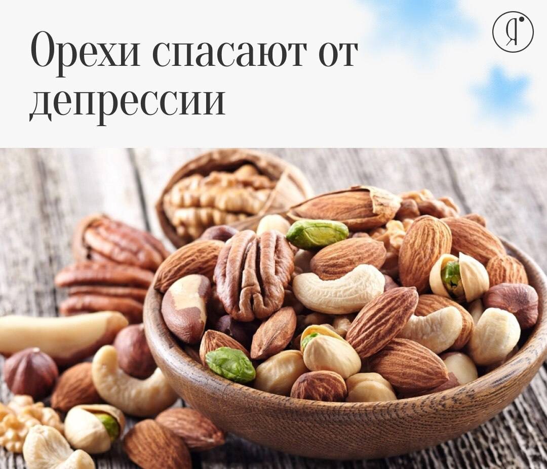 🥜 Орехи помогают от депрессии Большой эксперимент с участием 70 тысяч человек показал, что люди, которые ели орехи минимум три раза в неделю, сталкивались с симптомами депрессии на 25% реже. Орехи насыщены веществами, которые напрямую влияют на наше состояние. Омега-3 снижает воспаления в мозге и поддерживает нервную систему. Магний помогает расслабиться и снижает уровень тревоги. Триптофан участвует в выработке серотонина, гормона хорошего настроения. 🥜 Грецкий орех содержит больше всего омега-3. 🥜 Кешью и миндаль лидеры по магнию и триптофану. Лучшее решение это смешивать грецкие орехи с кешью или миндалём и есть небольшую горсть несколько раз в неделю. Online Якутия | Ждем вас в МАХ
