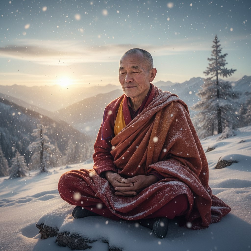 Мастер раскрывает тайну жизни через снег! Ученик подошёл к Мастеру, беспокойство горело в его глазах. "Мастер, я шёл за смыслом, но потерял след. Что делать?" – спросил он. Тишина окутала их, как плотный туман, в котором не видно ни конца, ни начала. После долгого молчания Мастер поднял взгляд. "Ты помнишь, как снег ложится на воду?" — сказал он. "Да, Мастер. Он тает, исчезает без следа", — ответил ученик, смутившись. "Так и смысл. Когда ищешь его, подобно следу в снегу, он исчезает. Остановись. Пусть найденное растворяет искомое". Ученик замер. В его сердцевине образ снега и воды оставил бесконечный след.
