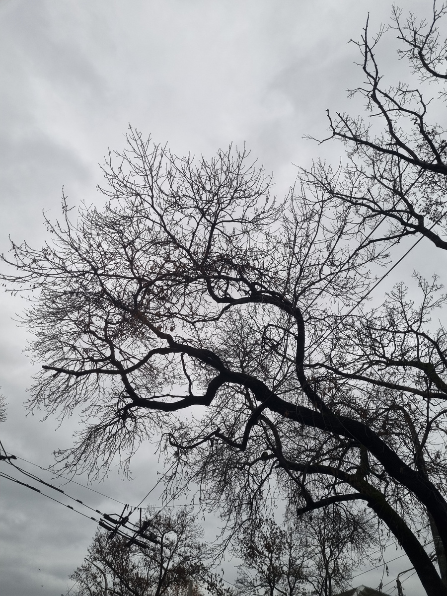 Снова черных ветвей сплетены кружева На белилах с утра потемневших небес. Значит, всё-таки вновь наступила зима! Хоть, казалось, пока обойдется и без.. Без неё. Ещё стынет на кленах листва, Золотой не расстегнут прощальный наряд. И хрустящие льдинки по лужам с утра Зеркалами зимы на воде не блестят. Ещё кажется, будет как прежде тепло. Холод сдастся легко пред ветрами морей. Только падает тихо листва все равно, Бледным золотом с черных замерзших ветвей. Значит, снова приходит пора тишины Замерзающих слов, остывающих слез И надежды на зов возрожденной весны, Как в янтарь, в глыбы льда запирает мороз. Только снова раздастся Рождественский звон, Вновь крещенских морозов послышится треск, Дробь капели расплещется с разных сторон И укроются вишни фатою невест. Бесконечное это сплетенье чудес Повторится опять в круговерти своей И по серым белилам холодных небес Снова лягут узоры из черных ветвей. 11.12.25